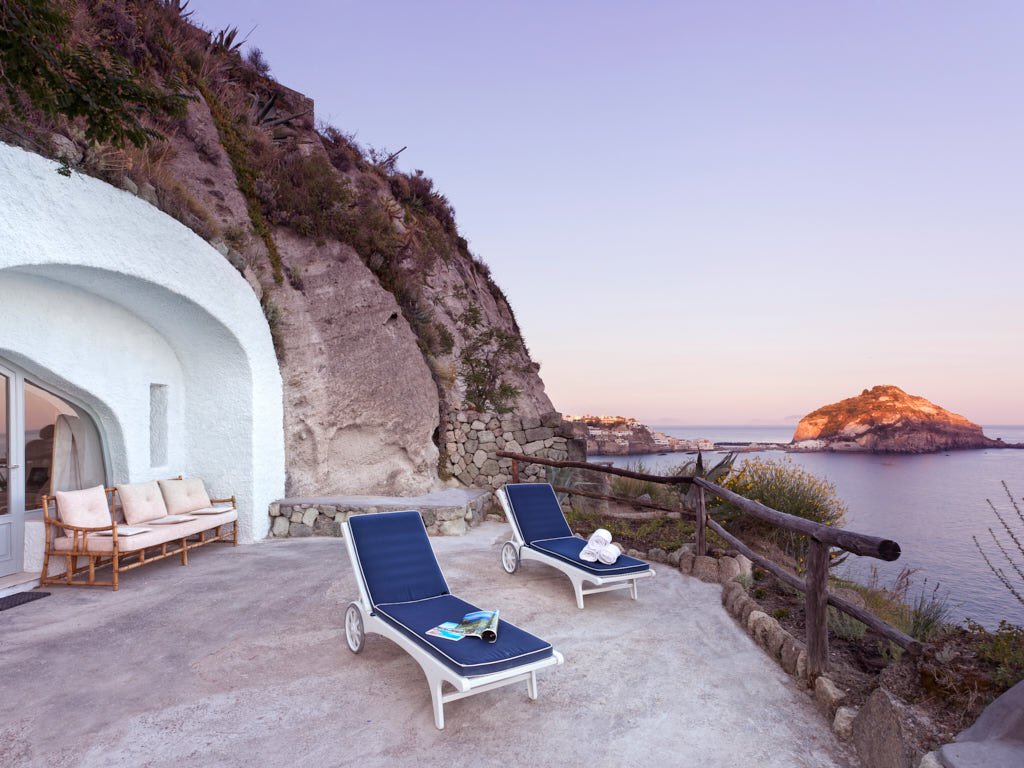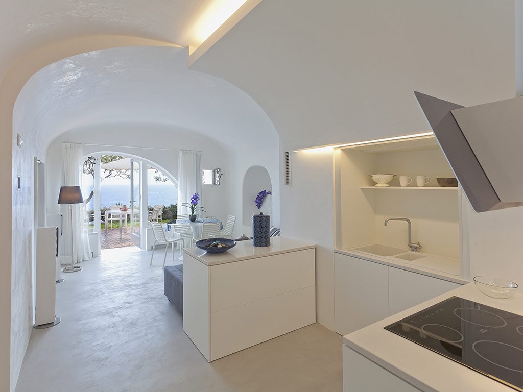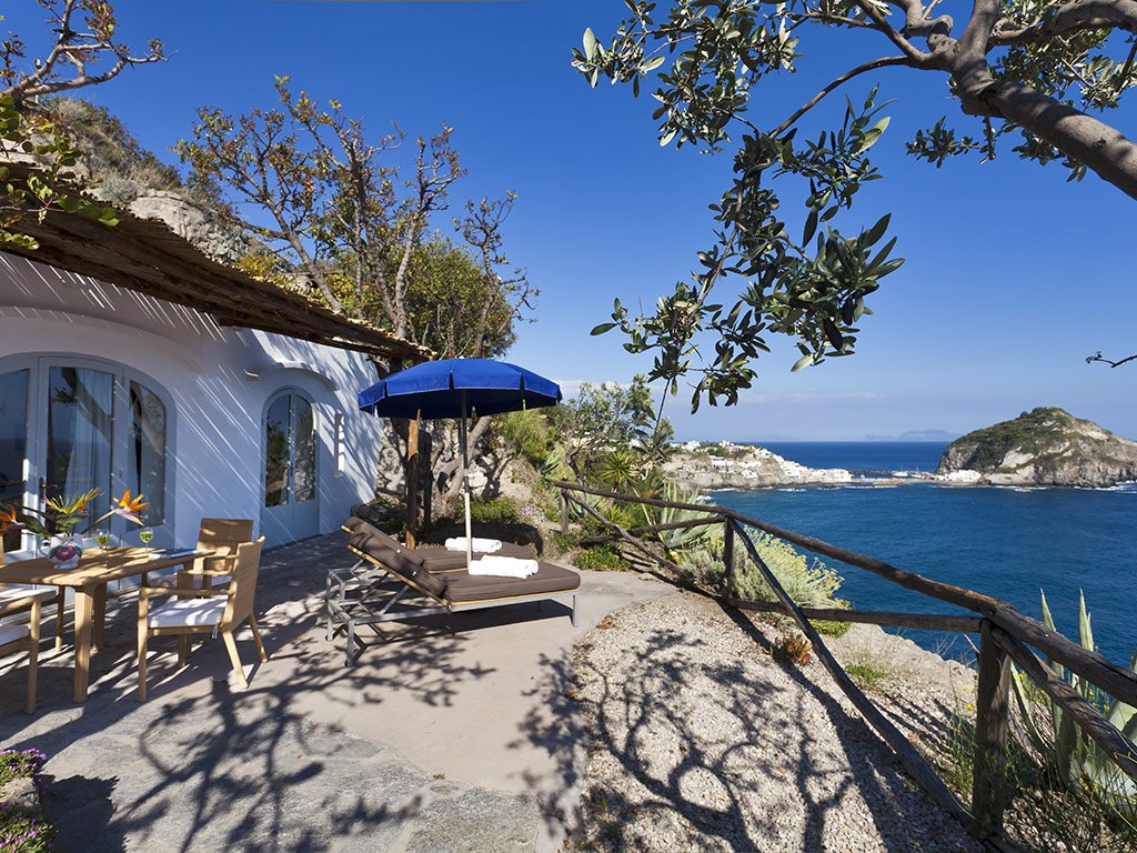 Lage: Diese außergewöhnlichen Wohnungen liegen auf einem Felsvorsprung zwischen Punta Chiarito und Sant' Angelo, direkt in Succhivo, einem ruhigen kleinen Ort an der Küste mit direktem Blick auf das malerische Fischerdorf Sant' Angelo, welches nur ca. 500 Meter entfernt liegt. Entfernung nach Forio 4 km. Bushaltestelle nur wenige Meter von der Anlage entfernt.