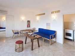 Appartements: Die liebevoll angelegte Anlage besteht aus insgesamt 11 selbstständigen Wohnungen mit unterschiedlicher Größe (von 37 bis 85 qm), die zum Meer hin liegen und über schöne Terrassen verfügen. Diese sind meist mit Holz/Bambus überdacht und mit Tisch und Bänken ausgestattet. Die Wohnräume sind modern möbliert und im Stil einfacher, ischitanischer Häuser „aus früher Zeit“. Alles Wohnungen sind mit Safe, Klimanlage, Haartrockner und kostenlosem Wi-Fi ausgestattet. Sat TV nur im Apartment Castello di Poppa.
