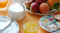 Verpflegung: Das Frühstück mit hausgemachten Backwaren wird auf der Terrasse mit Poolblick oder in den Gästezimmer serviert.