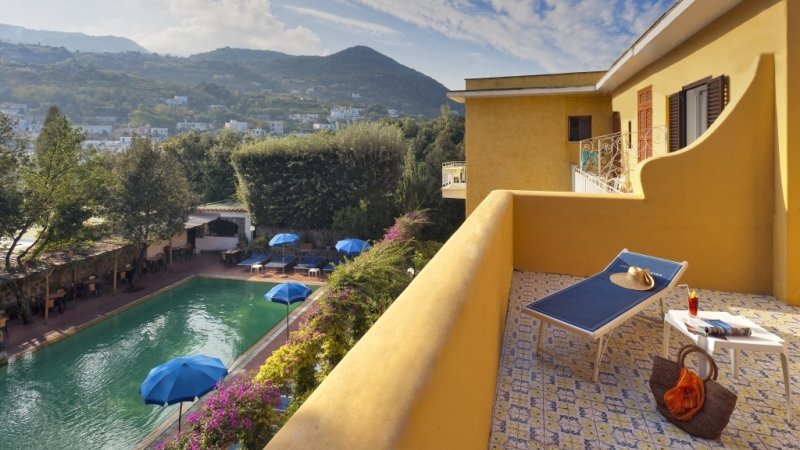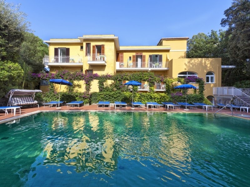 Lage: Das kleine familiär geführte Haus liegt ruhig, in zentraler Lage, umgeben vom Jahrhunderte alten Pinien- und Eichenhain von Ischia Porto. Das Zentrum und der Strand sind nur ca. 15 Gehminuten vom Hotel entfernt. Linienbushaltestelle ca. 5 Gehminuten.