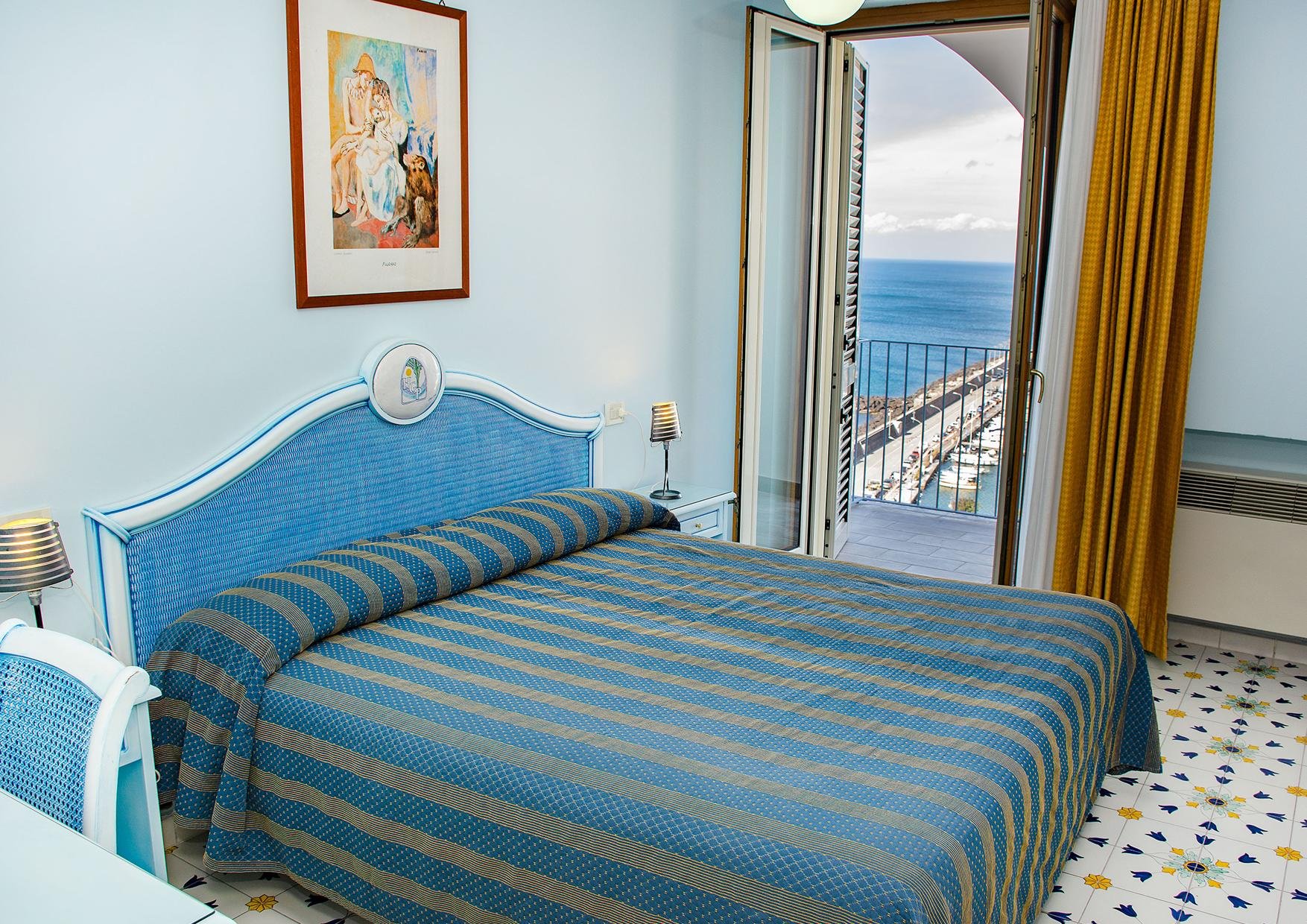 Zimmer: Alle (51) renovierte Zimmer sind freundlich und komfortabel eingerichtet mit Dusche/ WC, Föhn, Telefon, Minibar, Safe, SAT-TV, Heizung und Klimaanlage (Juli-August). Die Zimmer Comfort mit Balkon (gegen Aufpreis buchbar) liegen zur Bergseite. Zimmer Superior mit Balkon und Meerblick liegen mit Blick auf den malerischen Hafen.