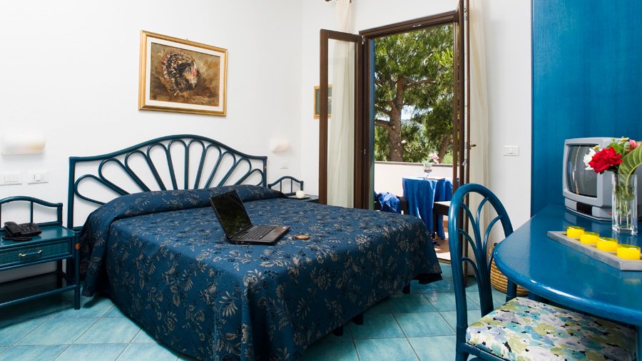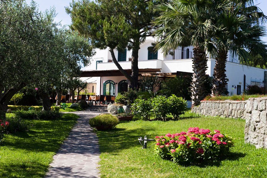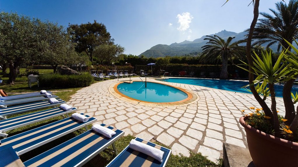 Lage: Das kleine renovierte Hotel oberhalb des freien Strands Cava dell'Isola, im westlichen Teil der Insel, liegt inmitten einer grünen Oase mit herrlichem Blick auf den Hausberg Monte Epomeo. Der liebevoll gepflegte Garten bietet Ruhe und Entspannung am Pool oder an der Snack-Bar. Ideale Position für einen Strand-Urlaub und gleichzeitig nicht fern vom Zentrum. Wenige Gehminuten von der Strandbucht Cava dell’Isola entfernt, die über einige Stufen erreichbar ist. Die bekannte Poseidon Gärten und der Citarastrand sind ca. 600 m entfernt. Ins Ortszentrum von Forio sind es über ein Strandpromenade ca. 15 Gehminuten. Linienbushaltestelle ca. 150 m entfernt.