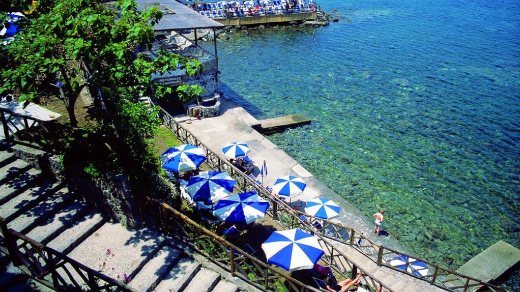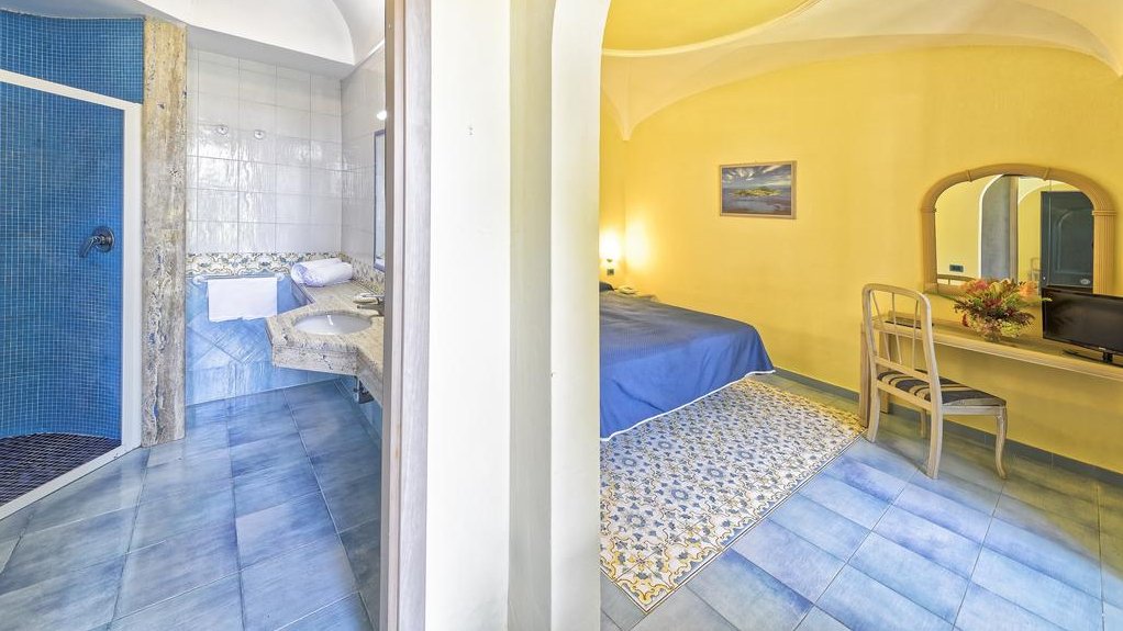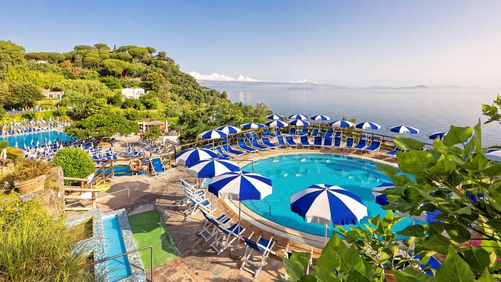 Lage: Zwischen Ischia Porto und Casamicciola Therme, innerhalb des terrassenförmig, mit vielen Treppen angelegten (20.000 qm) großen Thermalparks. Atemberaubende Lage mit wunderschönen Blick auf das Meer und dem Golf von Neapel. Bushaltestelle oberhalb der Anlage.