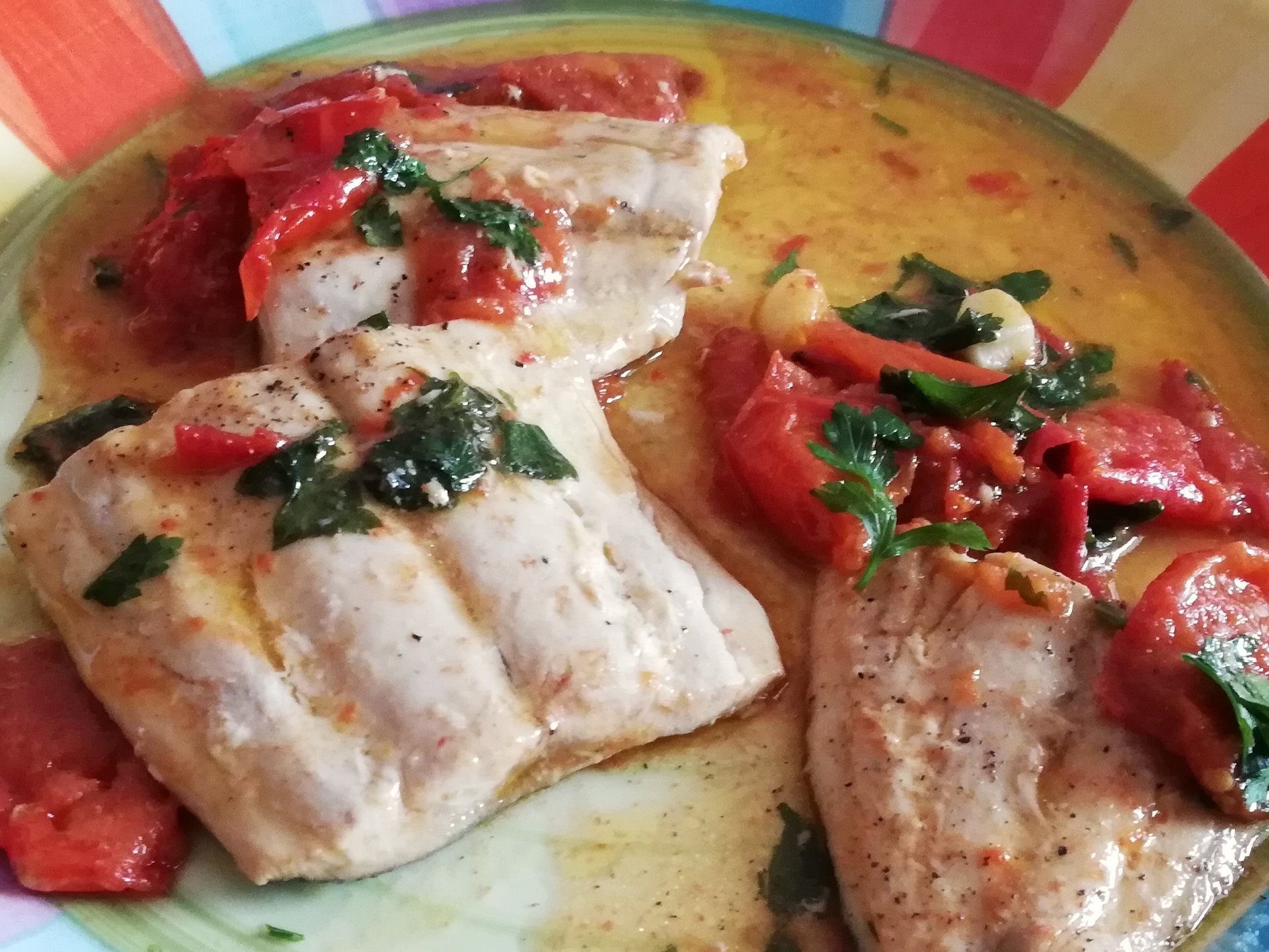 Zubereitung: Lampuga filetieren lassen. Knoblauch in einer Pfanne mit Öl (kann Olivenöl sein) leicht anbraten lassen. Diesen leicht anrösten lassen bis es sich leicht ins Gelb/Braun verfärbt und dann klein geschnittene Tomaten dazu geben. Petersilie klein schneiden und auch dazu geben. Wenige Minuten kochen lassen bis sich alles gut mit einander verbunden hat und dann einen Schuss Wein dazu geben. Mit Salz Pfeffer oder Chilli würzen. Gut verrühren und dann die Lampugafilet dazu geben. Ein Glas Wasser und ein Schuss Wein darüber geben und Deckel drauf. Die Masse zum Kochen bringen und dann auf kleiner Flamme kochen lassen. Schärfe (Peperoncino) kann man zum Ende dazu geben. Abhängig davon wie scharf man es mag. Ein Schuss frische Petersilie gehört auch zum Schluss immer dazu. Als Beilage gern Salkartoffeln oder gekochte Broccoli oder Blumenkohl. Beliebig auch Basmati Reis. Als Variante können Sie auch in die Sauce schwarzen Oliven und Kapern geben. Gern auf Fisch auch Thymian oder Salbei