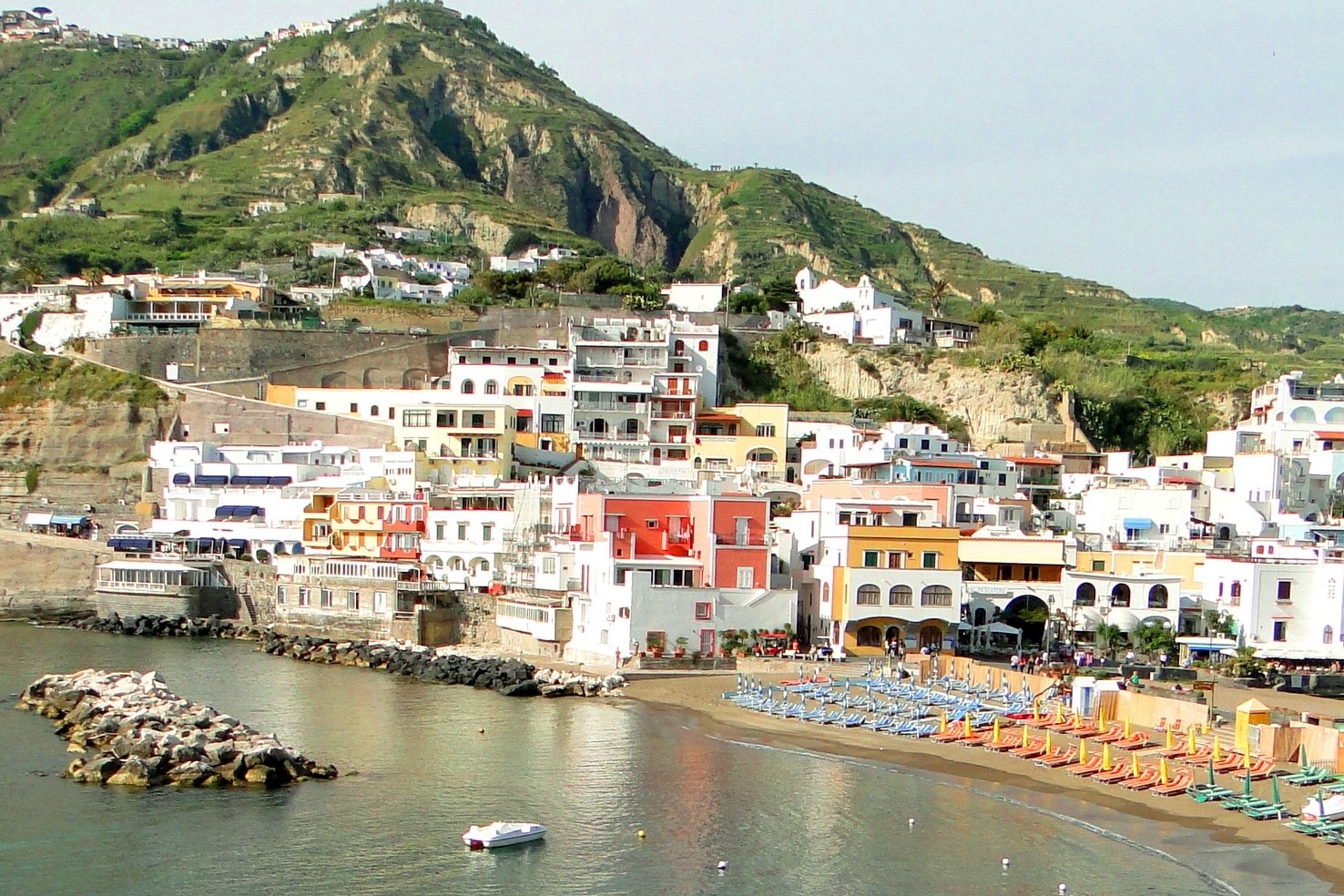 Am Südzipfel der Insel, direkt am Meer, liegt das malerische Fischerdorf Sant' Angelo mit der einzigen, gesamten autofreien Zone. Hier dürfen nur Elektrokarren mit einer speziellen Genehmigung fahren.
