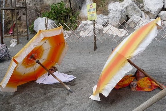 Zu Beginn des Strandes von Sant' Angelo, unterhalb des Apollon-Aprodite-Thermalgartens, trifft man auf die sogenannten Fumarolen. Dies sind heiße Dämpfe, die aus dem Sand hervor kommen. Der Sand ist an dieser Stelle fast 100 Grad heiß und natürlich abgegrenzt. Ein Bademeister bietet dort Sandbäder, welche früher einmal auch als Kur verschrieben wurden. Sich in den Sand eingraben zu lassen ist ein schönes und "heißes" Erlebnis!!!